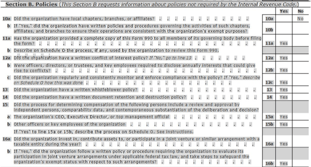 Multicare Health System (91-1352172) Answers “Yes” to Conflict of Interest and Whistleblower Policies in place during the fiscal year. This is an example of a transparent and compliant return.